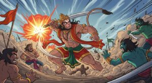हनुमान जी के युद्ध में वीरता के कारनामे – संजीवनी लाना, अहिरावण वध और राम जी की सेवा। बच्चों के लिए प्रेरणादायक कहानी।