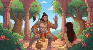 अशोक वाटिका में सीता दर्शन की अद्भुत कहानी। जानिए कैसे हनुमान जी ने माता सीता से मुलाकात की और राम जी का संदेश पहुंचाया। बच्चों के लिए प्रेरणादायक कथा।