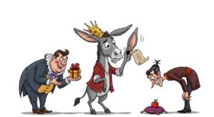 अकबर बीरबल की मजेदार कहानी जिसमें बीरबल ने चतुराई से चापलूस दरबारियों को सबक सिखाया। गधे के कान जैसे बालों की यह रोचक कहानी।