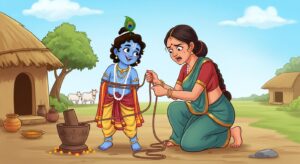 दामोदर लीला में जानिए कैसे माता यशोदा ने प्रेम से कन्हैया को रस्सी से बांधा। यह पावन कथा बताती है कि भगवान केवल प्रेम के बंधन में बंधते हैं।