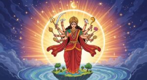 आदि शक्ति का प्राकट्य की अद्भुत कहानी। जानिए कैसे माँ दुर्गा ने महिषासुर का वध किया और धर्म की रक्षा की। बच्चों के लिए प्रेरणादायक देवी माँ की कहानी।