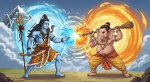 शिव-गणेश युद्ध की अद्भुत कथा। जानिए कैसे पिता-पुत्र के बीच संघर्ष के कारण गणेश जी बने प्रथम पूज्य देवता। माता पार्वती के आदेश और भक्ति की महान गाथा।