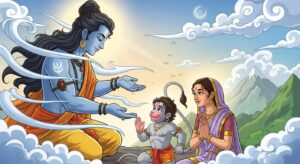 जानिए कैसे पवन देव का आशीर्वाद पाकर हनुमान जी का जन्म हुआ। माता अंजना की तपस्या और दिव्य प्रसाद की रोचक कथा। बच्चों के लिए प्रेरणादायक हिंदी कहानी।