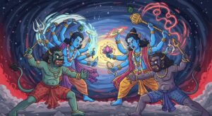 मधु-कैटभ वध की रोमांचक कहानी। जानिए कैसे भगवान विष्णु ने दो शक्तिशाली राक्षसों का वध करके सृष्टि की रक्षा की। बच्चों के लिए प्रेरणादायक धार्मिक कथा।