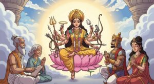 त्रिपुरसुंदरी माता की अद्भुत कथा – कैसे माता ने त्रिपुर असुरों का वध करके धर्म की रक्षा की। बच्चों के लिए प्रेरणादायक देवी माता की कहानी।