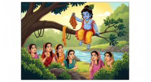 भगवान कृष्ण की प्रसिद्ध लीला – गोपियों के वस्त्र चुराना। जानिए कैसे कन्हैया ने गोपियों की भक्ति की परीक्षा ली और उन्हें निर्भयता का पाठ सिखाया।