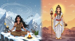 महागौरी माता की अद्भुत कथा – जानिए कैसे पार्वती ने कठोर तपस्या करके भगवान शिव को पति रूप में पाया और महागौरी बनीं। बच्चों के लिए प्रेरणादायक कहानी।