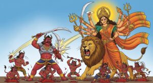 रक्तबीज वध की अद्भुत कहानी। जानिए कैसे माँ दुर्गा और माँ काली ने मिलकर अजेय असुर रक्तबीज का वध किया और धर्म की स्थापना की।