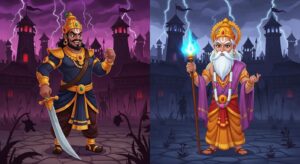 शुम्भ-निशुम्भ वध की रोमांचक कहानी। जानें कैसे माँ दुर्गा ने दुष्ट असुरों का वध करके धर्म की स्थापना की। बच्चों के लिए प्रेरणादायक कथा।
