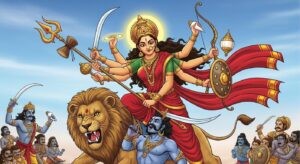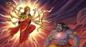 महिषासुर वध की कथा – जानिए कैसे माँ दुर्गा ने महिषासुर का वध करके धर्म की स्थापना की। बच्चों के लिए प्रेरणादायक देवी माँ की कहानी।