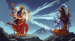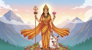 शैलपुत्री माता की पावन कथा – हिमालय की पुत्री का दिव्य अवतार, महिषासुर का वध और नवरात्रि की प्रथम देवी की महिमा। बच्चों के लिए प्रेरणादायक कहानी।