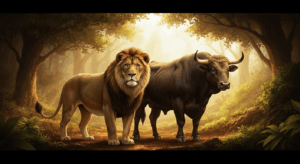 सिंह और सांड की मित्रता की यह पंचतंत्र कहानी बताती है कि सच्ची मित्रता में जाति-पाति का भेद नहीं होता। एकता में शक्ति का संदेश देती प्रेरणादायक कहानी।