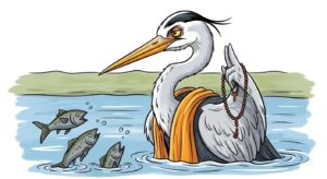 बगुला भगत की चालाकी की रोचक कहानी। जानिए कैसे एक धूर्त बगुले ने धर्म का नाटक करके मछलियों को धोखा दिया और अंत में उसका क्या हुआ।