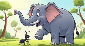 हाथी और चींटी की मित्रता की प्रेरणादायक कहानी। जानिए कैसे छोटी चींटी ने विशाल हाथी की जान बचाई। बच्चों के लिए नैतिक शिक्षा से भरपूर पंचतंत्र की कहानी।