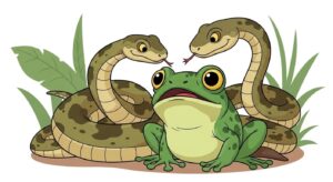 दो सांप और मेंढक की प्रेरणादायक कहानी। जानिए कैसे एक छोटे मेंढक की दया ने क्रूर सांपों को बदल दिया। पंचतंत्र की शिक्षाप्रद कथा।